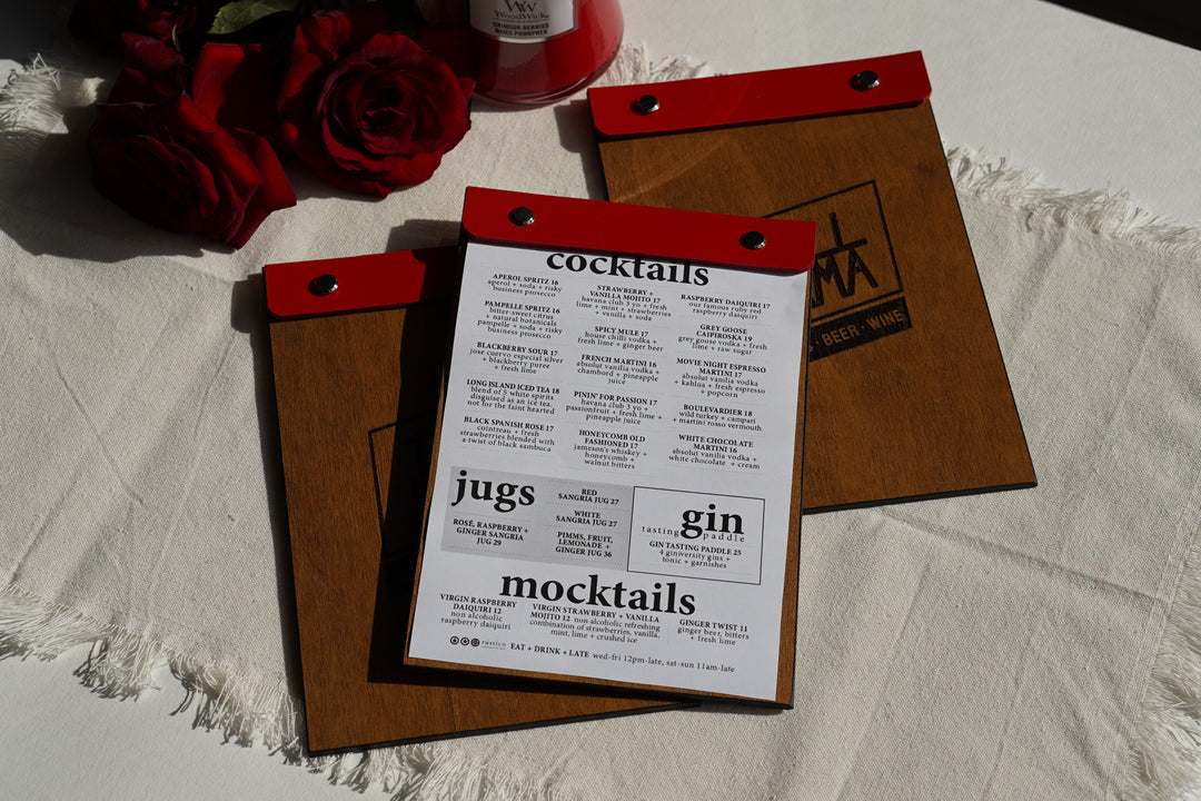 Wooden Menu Folder with Leather Binding: Restaurant Menu Board