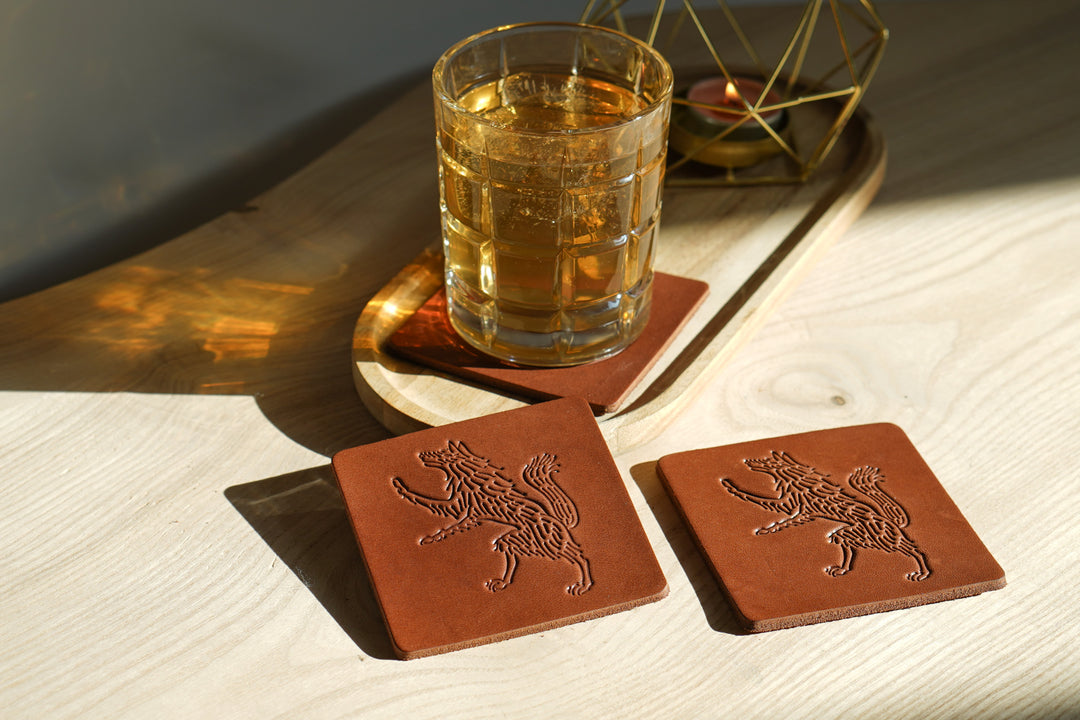 Debossed Leather Coaster Set: Custom Drink Coasters