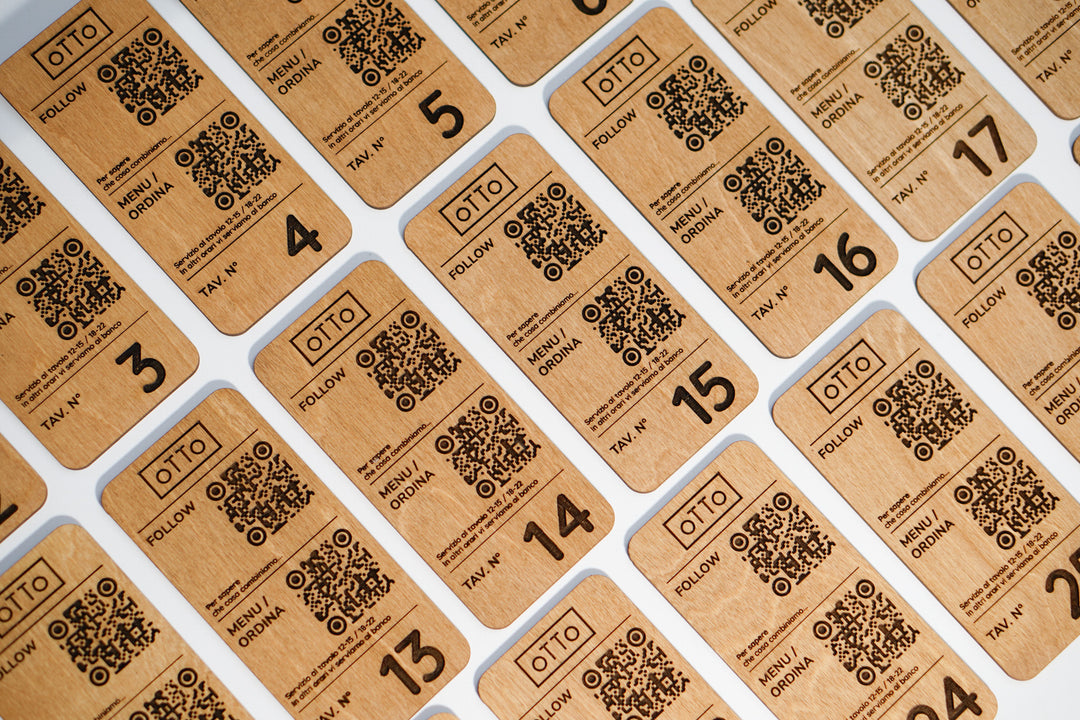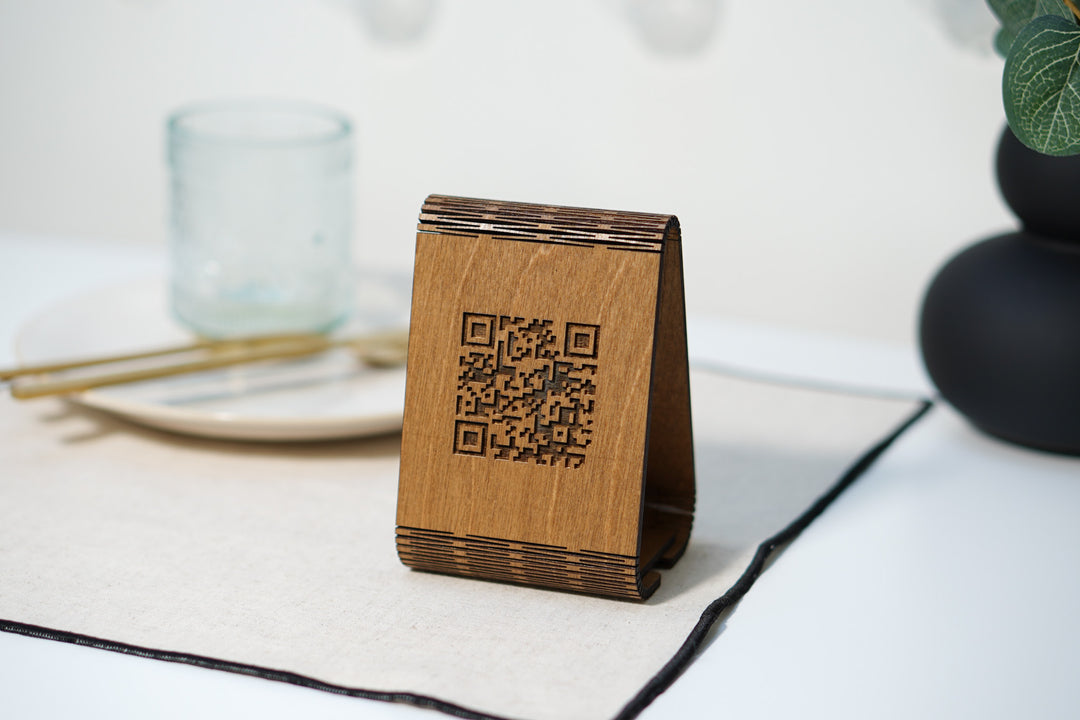 Custom NFC QR Code Plywood Stand: Engraved Logo, Tap to Connect