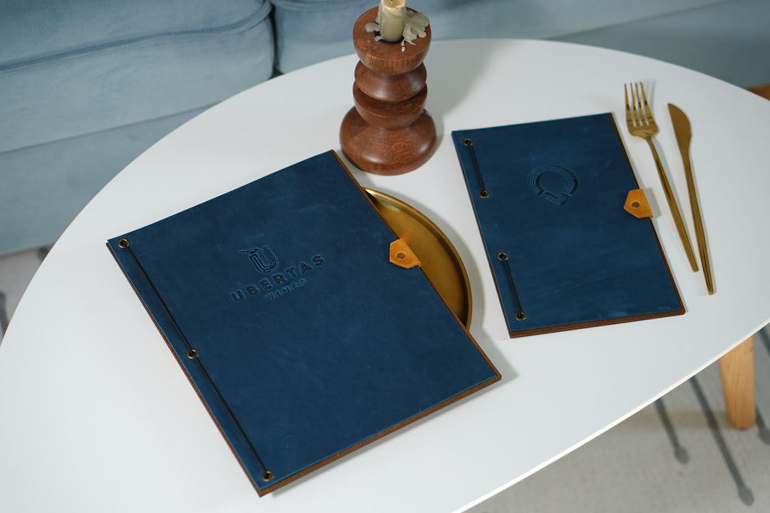 Embossed Logo Leather Menu Folder: Custom Restaurant Menu
