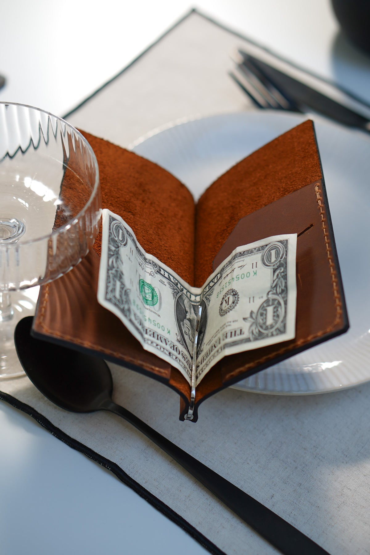 This Check presenter is made of high-quality Vintage Leather.