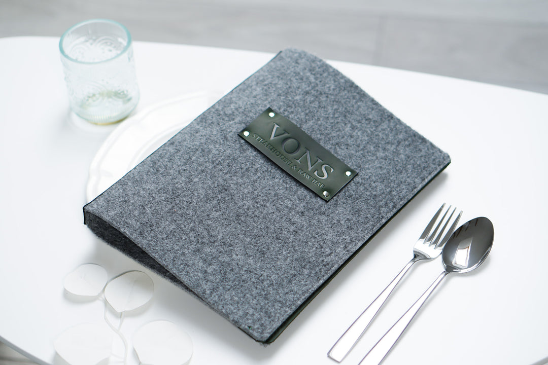 Felt Restaurant Menu Holder: Leather & Wood Cafe Menu Board