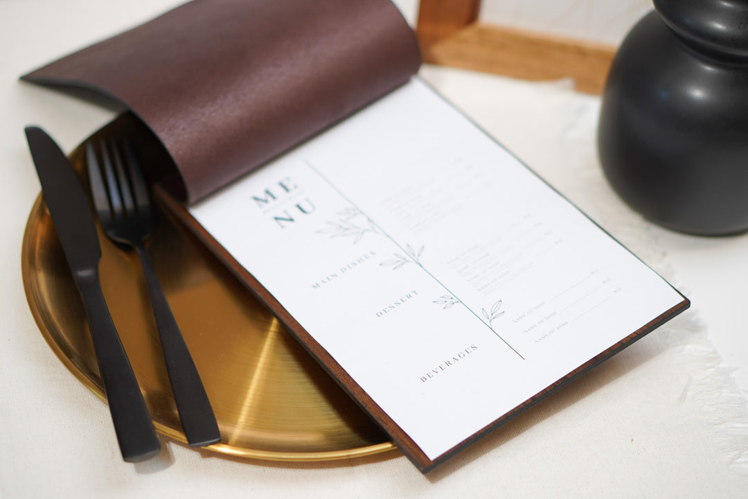Elegant Ashwood and Leather Menu Folder for A5 and US Half Letter Sheets