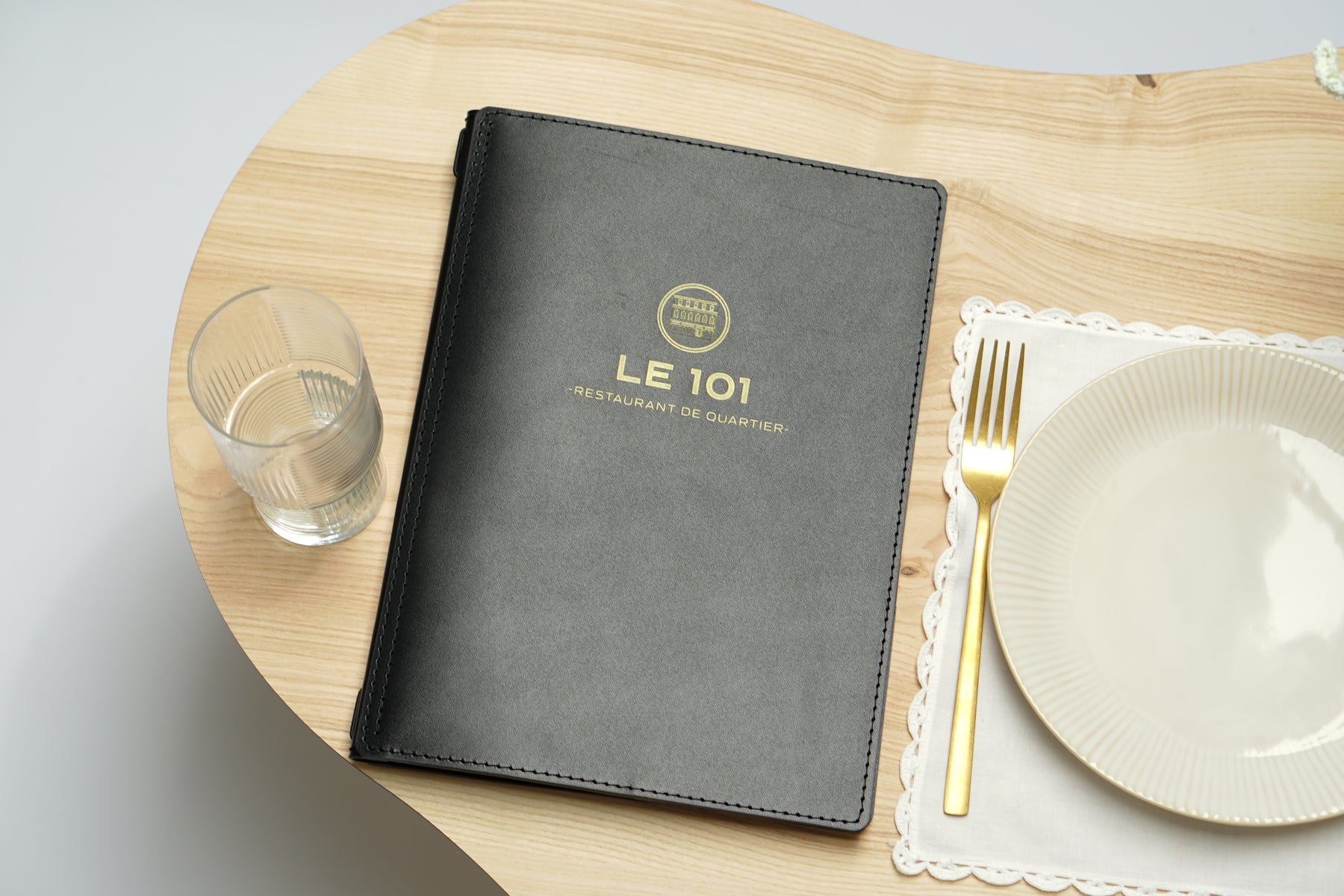 ✓ Your logo can be debossed (options: gold, silver, white or plain) (paid separately, the logo of another restaurant is given for an example)