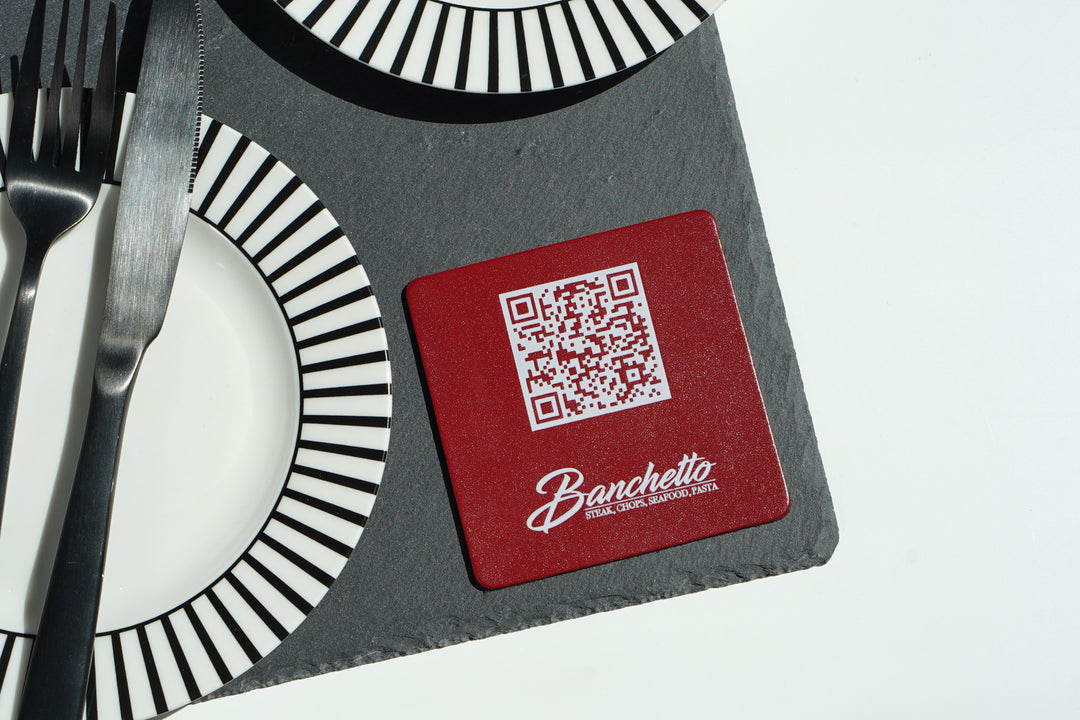Leather QR Code Menu Sign: Personalized Restaurant Tabletop Display