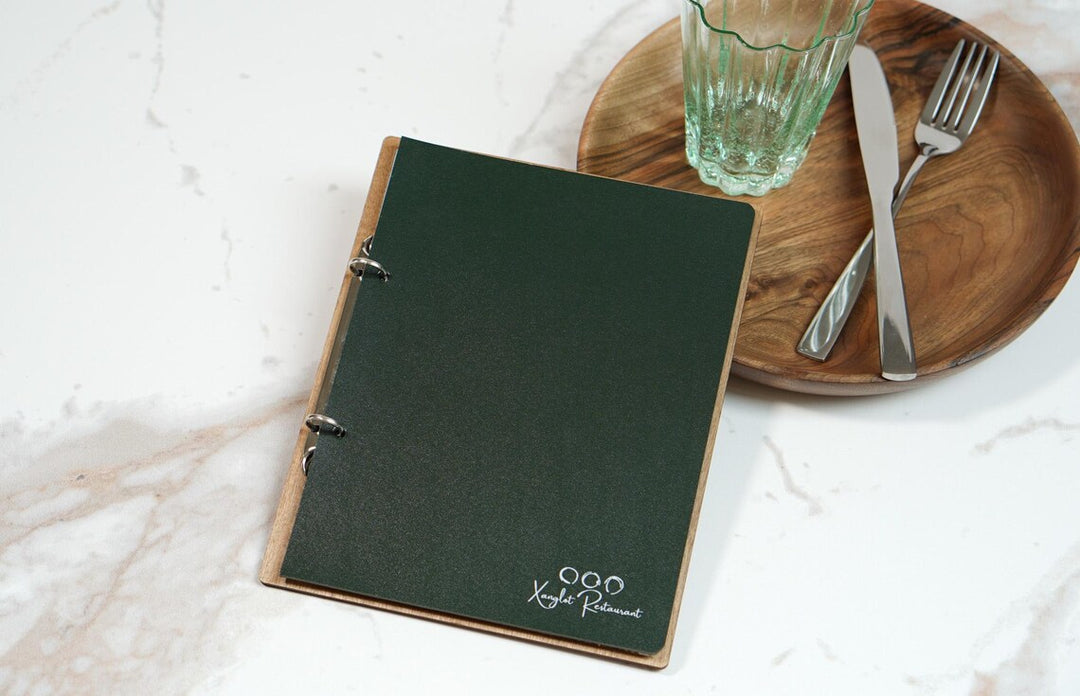Personalized Wood Menu Cover: Logo Embossed Restaurant Menu