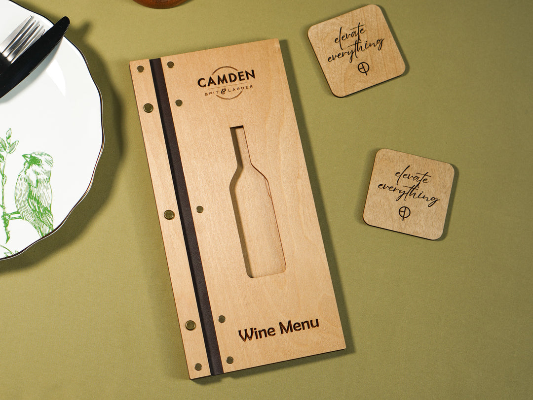 Engraved Wooden Menu Folder: Custom Restaurant Cafe Menu