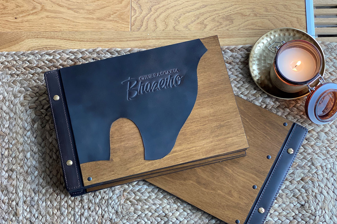 Wooden Menu Folder with Leather Binding: Restaurant Menu Board