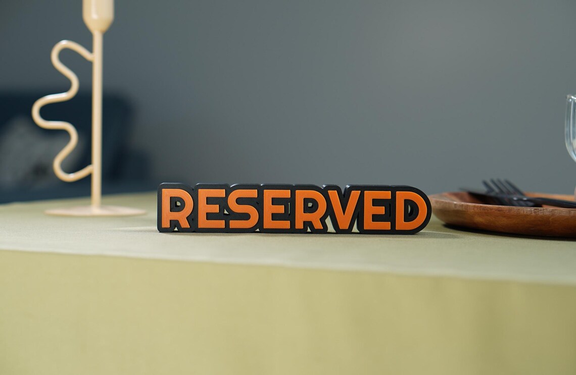 Add a stylish and eco-friendly touch to your special event with this beautifully designed Reserved Table Sign, 3D printed using PLA biodegradable plastic šæ. Perfect for weddings, restaurants, cafes, and any occasion where you want to reserve seating in a sustainable and elegant way. The modern yet versatile design makes it easy to blend with any theme or decor.
