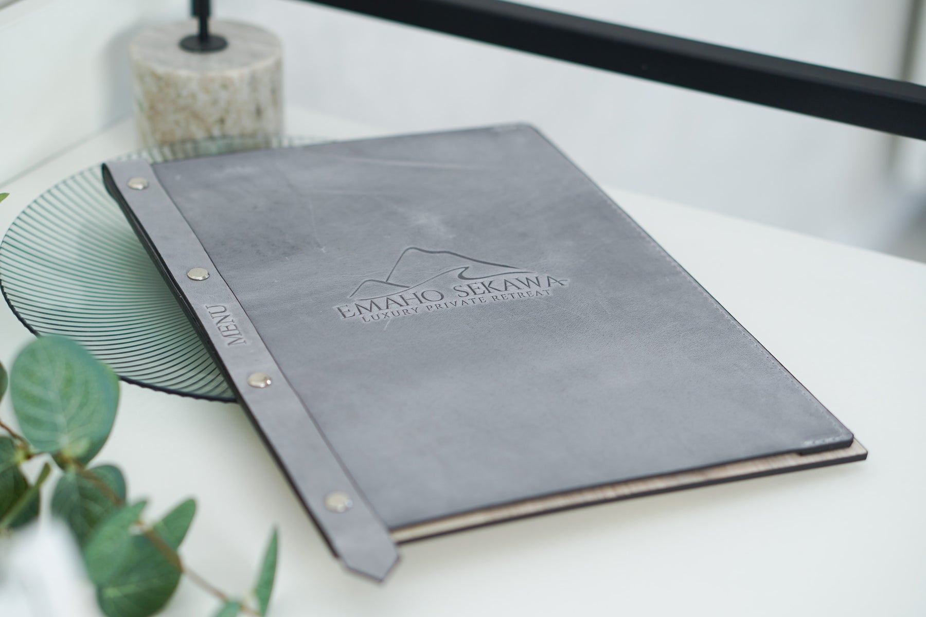 Material: Crafted from high-quality ashwood board and finished with a luxurious leather cover, our menu folder exudes elegance and durability.