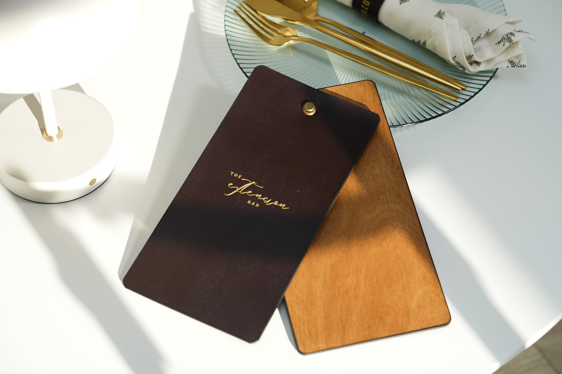This menu is made of high-quality A-Grade plywood and Italian Leather. The fastening of the paper menu metal screw.