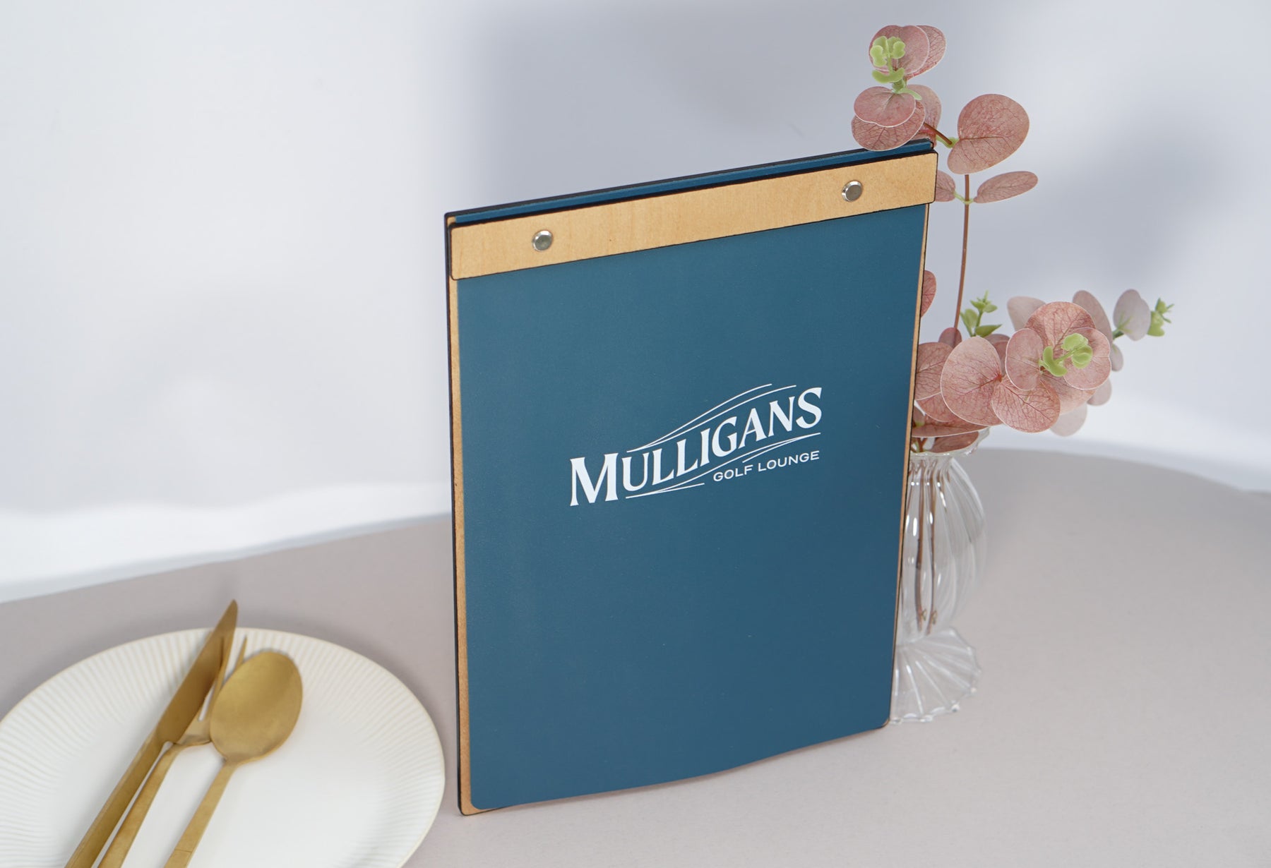 Embossed Logo Leather Menu Board: Wood Restaurant Clipboard