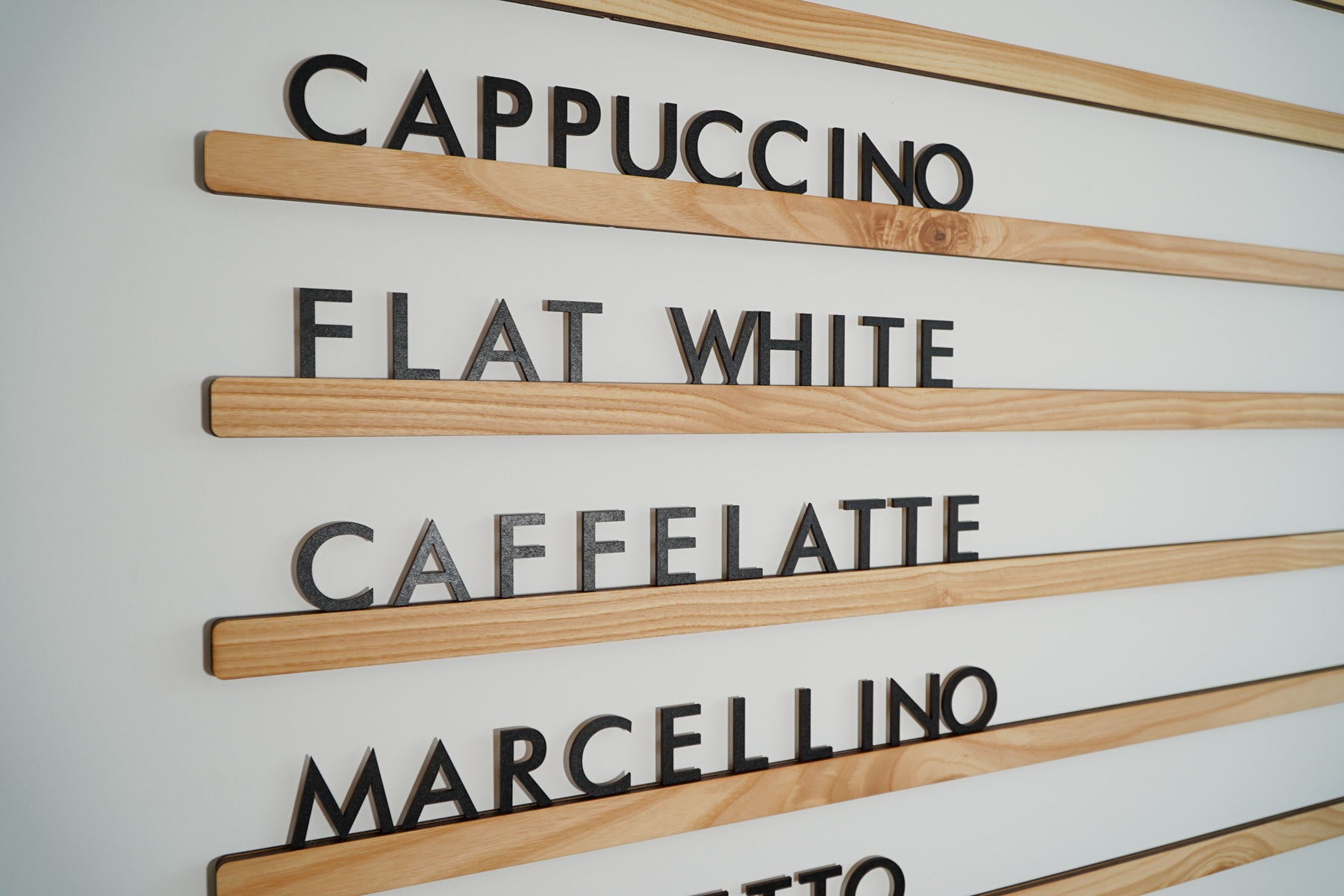 ✓ Letters can be in 3 colors: natural wood, black wood, brown wood or black HDF, white HDF.